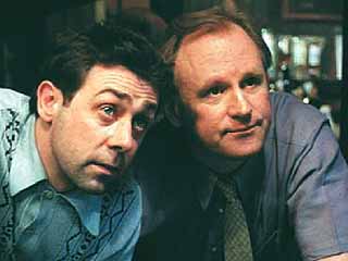 Publicity : A man rushes into the local job centre brandishing a shotgun and ordering the staff to open the safe. When they point out that they haven't got a safe, he snaps, "Course you have, you're a building society", before realising his mistake, saying something very rude and blasting a hole in the ceiling. Sounds like a case for Peter Davison's "Dangerous" Davies, the last detective you'd ever send on a tricky job, but the first to send on a pointless one. He's also the chap you'd send to give the irate victim of a burglary a lift home and the one you'd palm off on an interfering old woman who believes her neighbour is a murderer. So, a pretty full case-load for poor old Dangerous, then. But even though you can't believe any of them are crimes that really require investigating, once again one of them turns into something more complicated. "I think it's a waste of time," sighs Detective Inspector Aspinall (Rob Spendlove), when Dangerous starts following up a lead, "but as it's wasting your time, go ahead!". The Last Detective is very light-hearted and, as times, positively daft, so it makes pleasant viewing that's not all that taxing. However, it's also like eating a bag of marshmallows: nice enough at the time, but afterwards, you wonder why you did it. (Radio Times, February 15, 2003).