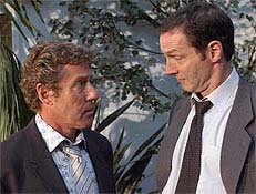 Kind-hearted north London copper "Dangerous" Davies (Peter Davison) is back for a second series of lightweight police dramas. He's the kind of detective who's inclined to believe things are actually less sinister than they appear, which is strangely endearing. The main plot tonight is a locked-door mystery: an artist has burned to death in his studio - but how? His wife is rather calm about the whole thing and has a dodgy alibi, but Dangerous is reluctant to point the finger at her. Instead, he purses his lips, takes off his glasses (he does this a dozen times an episode) and looks for a less plausible explanation. The story unfolds in a baking-hot summer - but more oppressive than the heat is the fact that Dangerous has to shack up with the eccentric Mod (Sean Hughes), whose cold philosophising could drive even a patient policeman nuts. (Radio Times, February 7, 2004 - Article by David Butcher).
