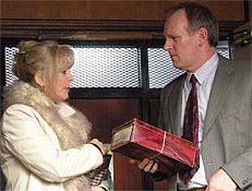 Publicity : Poor old "Dangerous" Davies. He likes being a policeman, but his colleagues treat him as a figure of fun, only fit for investigating pilfering postmen. The best description his friend Mod (Sean Hughes) can manage is that he's a policeman with a good heart, which perhaps explains why when Dangerous questions Mrs Dulciman about her missing husband, he ends up taking her empty bottles to the recycling centre for her. But if Peter Davison as Detective Constable Davies looks like some doleful-eyed spaniel, he behaves like a terrier when he thinks he's on the scent of a case. So, despite the fact that Mrs Dulciman says she's not in the least bit worried about her husband's disappearance, Dangerous won't be put off and pursues his own line of inquiry among the ballroom-dancing pensioners in the area. Like Midsomer Murders, The Last Detective is amiable and non-threatening, a genteel crime drama with impeccable manners and some impressive guest stars, including, in this episode, Sian Phillips and Julia McKenzie. (Radio Times, February 8, 2003).