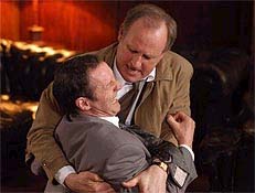 Meanwhile in the English winter our own red squirrel thrillers have been busy digging up their nuts. There is Peter Davison, for instance, as "Dangerous" Davies in the adaptation of Leslie Thomas' The Last Detective (ITV1, Friday). Davies is the kind of old-fashioned Dixon who gets old ladies cats down from trees or guides blind dogs over the road. He chases disaffected youths through urban wastelands and when he catches them they say "Ok, guv'nor, it's a fair cop", but in their own colourful lingo. Last week's first episode began in light quirky mode then turned incredibly dark and nasty when Davies discovered a trusted old colleague was guilty of a twenty-year-old murder and made him confess during his own retirement party. This week we were back to full-on quirk, as Davison sorted out an accidental killing among elderly ballroom dancing folk. If 24 is a pizza, piled with extra ham, this is a bowl of your granny's rid pud, and none the worse for that. The Guardian (February 9, 2003).