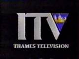 In 1989 the station relaunched its ident, although by then animated idents on ITV would only be seen in their respective regions, with only a static production "end-caption" of a programme's producer being seen elswhere. In the 1989 variant, The famous London skyline was tapered down to an orange triangle or v-shaped point and was now on a blue background, with three blue waves across the centre to symbolise the river (as shown above). At the same time the famous tune was dropped.