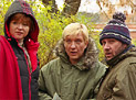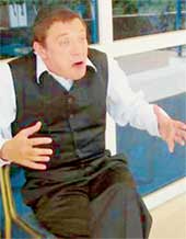 - У него этапы - до обвала рубля и после, когда он действительно снимался на пределе всех сил и средств. Последние два месяца работали в красивейших и облюбованных многими депутатами, в том числе и самим президентом, местах - на Валдае, около щедрого рыбного Селигера. Так вот за эти два месяца было отснято 6 тысяч метров пленки, работали ежедневно по 17 часов. По роли я ношу на плече 20-килограммовую камеру, а уши у моего оператора по воле авторов должны быть оттопыренными, для чего мне их особым приспособлением оттягивали. Так что к концу дня плечо у меня отваливалось, уши синели, а в глазах появлялся ненормальный блеск, который грузин-оператор комментировал так (дальше Ян говорит с грузинским акцентом, отчего все находящиеся в гримерке покатываются): "Ах, какой замечательный артист, посмотрите, какой у него живой глаз..." Бывало, пока на очередные съемки добывались деньги, менялось время года. В мороз при минус 25 играли в Москве летний эпизод, на фоне воткнутых в закамуфлированный сугроб березок. Все у всех дрожит и синеет, но терпим: и дышать нельзя, иначе пленка зафиксирует пар изо рта.