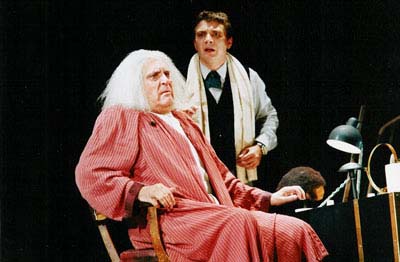 Посчитайте, он с 16 лет в театре, и 16-й год работает в нем. В том-то и дело, что есть пожилой актер и есть молодой костюмер. Но и один и другой отравлены одной идеей - театром. Если перекидывать на современное время - это, в принципе, гибель великого советского театра. То есть некая новая формация приходит на смену. Что это такое - никто не знает. В данном случае я тоже являюсь актером советского театра, той старой формации. Я ведь 11-й год в БДТ. Что касается партнерства с Басилашвили - он мне очень близок. Это попадание в десятку. Олег Валерианович гениальный, безумно талантливый артист. Он взял что-то свое, привнес что-то из пьесы. Он хитрый, конечно, и глубокий артист. Все замечает, про себя отмечает и каждое лыко у него в строку. А я, разумеется, на него смотрю как на Бога. Но, имея некую природную наглость, пытаюсь дотянуться до него - иногда получается, иногда нет. Потому что каждый спектакль мы играем все равно по-новому.